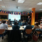 El lunes 16 de diciembre a las 16:30 nos visitaron 40 estudiantes del Grado de "Global Studies" para profundizar en sus conocimientos sobre la UE. La charla fue impartida por tres profesores del Departamento de Derecho Internacional Público de la Universidad de Salamanca.